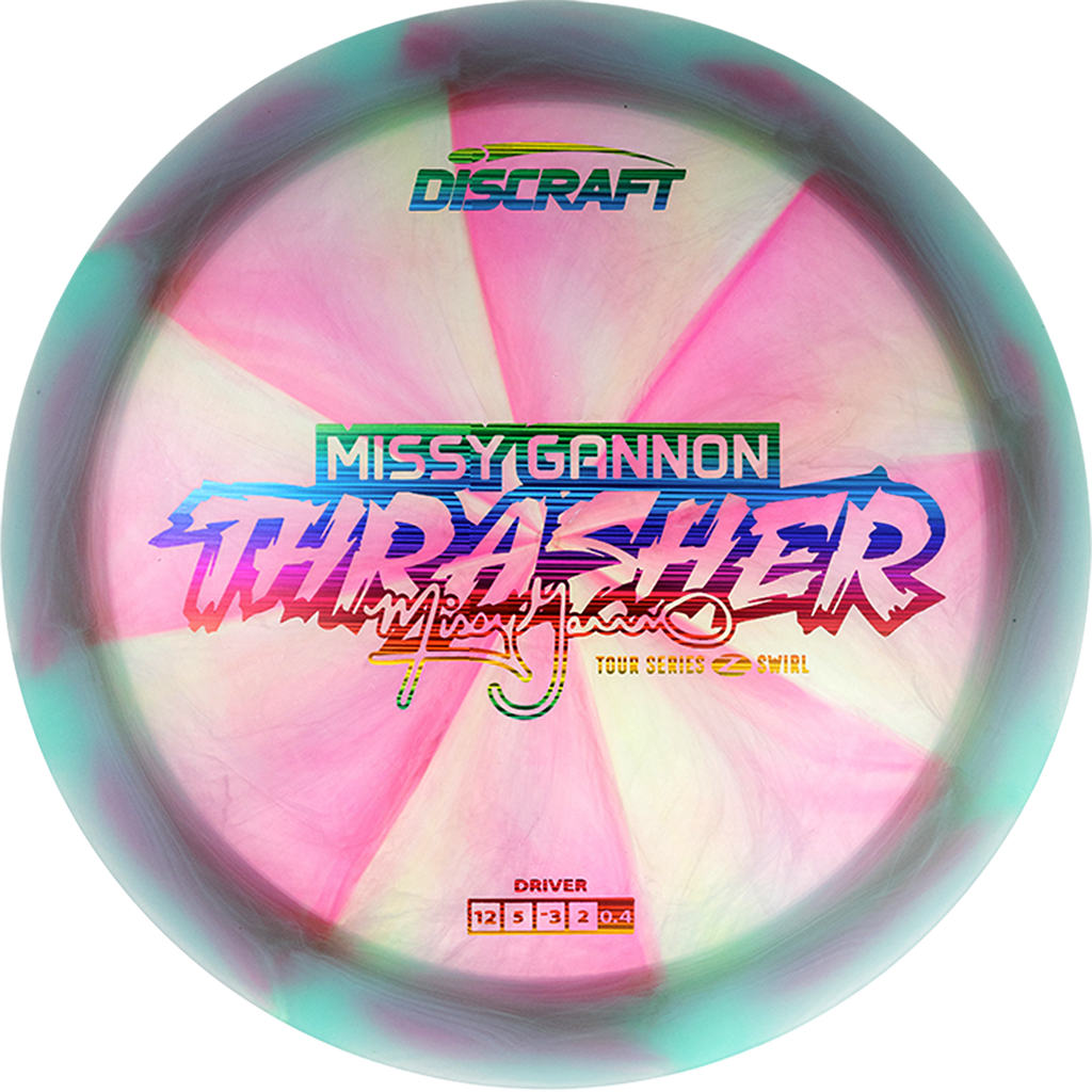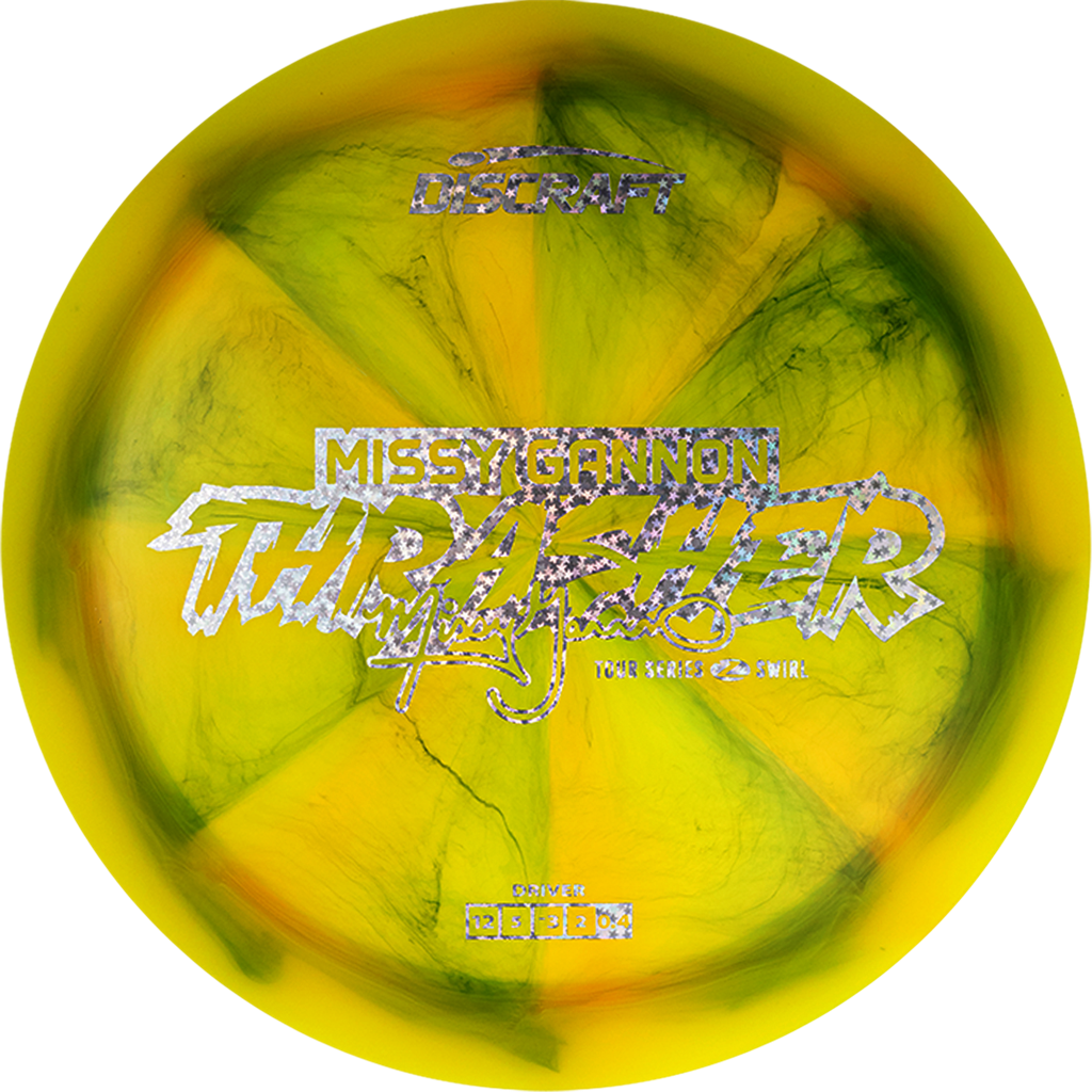 The Thrasher gets a Tour Series upgrade with Missy Gannon’s signature style—bringing finesse and power together in a high-speed package. In the 2025 Z Swirl blend, this Thrasher offers increased grip, enhanced torque resistance, and a more consistent release for players looking to push their distance potential. Perfect for hyzer flips, long turnovers, and full-power drives that finish with glide and control.