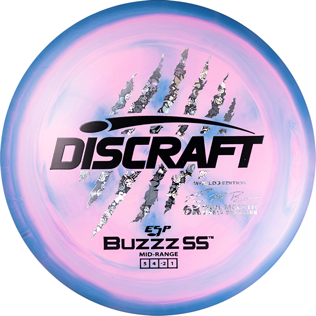 Bringing back one of our most recognizable championship inspired looks, the Worlds Edition 6-Claw ESP Buzzz SS celebrates the 2026 PDGA World Championship. Now with the trusted Buzzz SS mold, this release honors Paul McBeth’s 6 world titles while tying one of the sport’s most iconic visuals to the biggest stage.